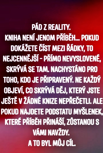 Kniha byla hotová na podzim roku 2022. Velmi brzy jsem však zjistila, že byla připravená k vydání v ten nejnevhodnější čas. V té době jsem se také teprve pomalu seznamovala s tím, jak to ve spisovatelské branži chodí. PÁD Z REALITY bylo moje první dílo a očekávání jsem měla vzhledem k neznalosti herního pole velmi naivní. Až mnohem později jsem z vyjádření jiných autorů zjišťovala, jak to běžně chodí a moje zkušenosti nejsou žádnou výjimkou.